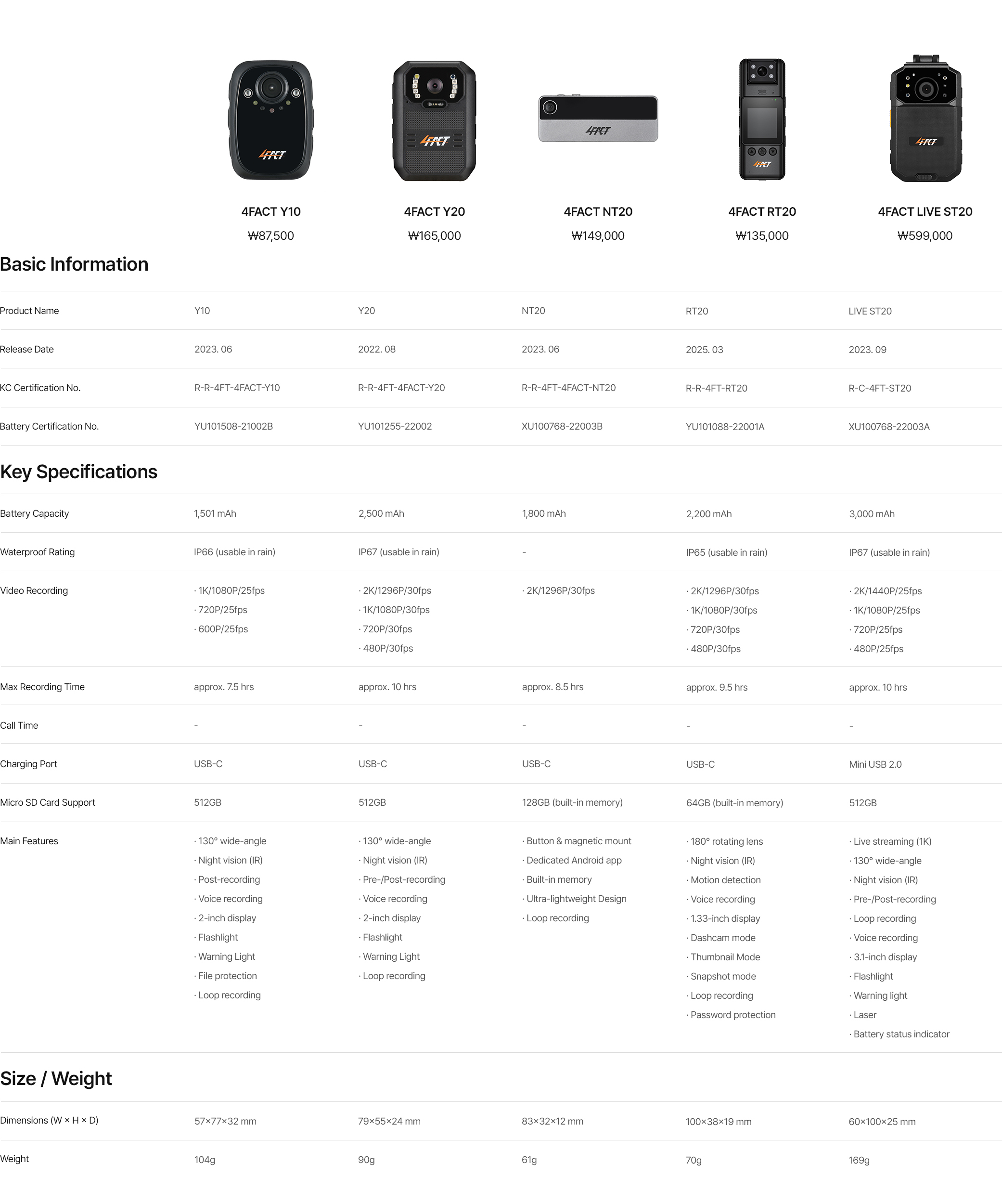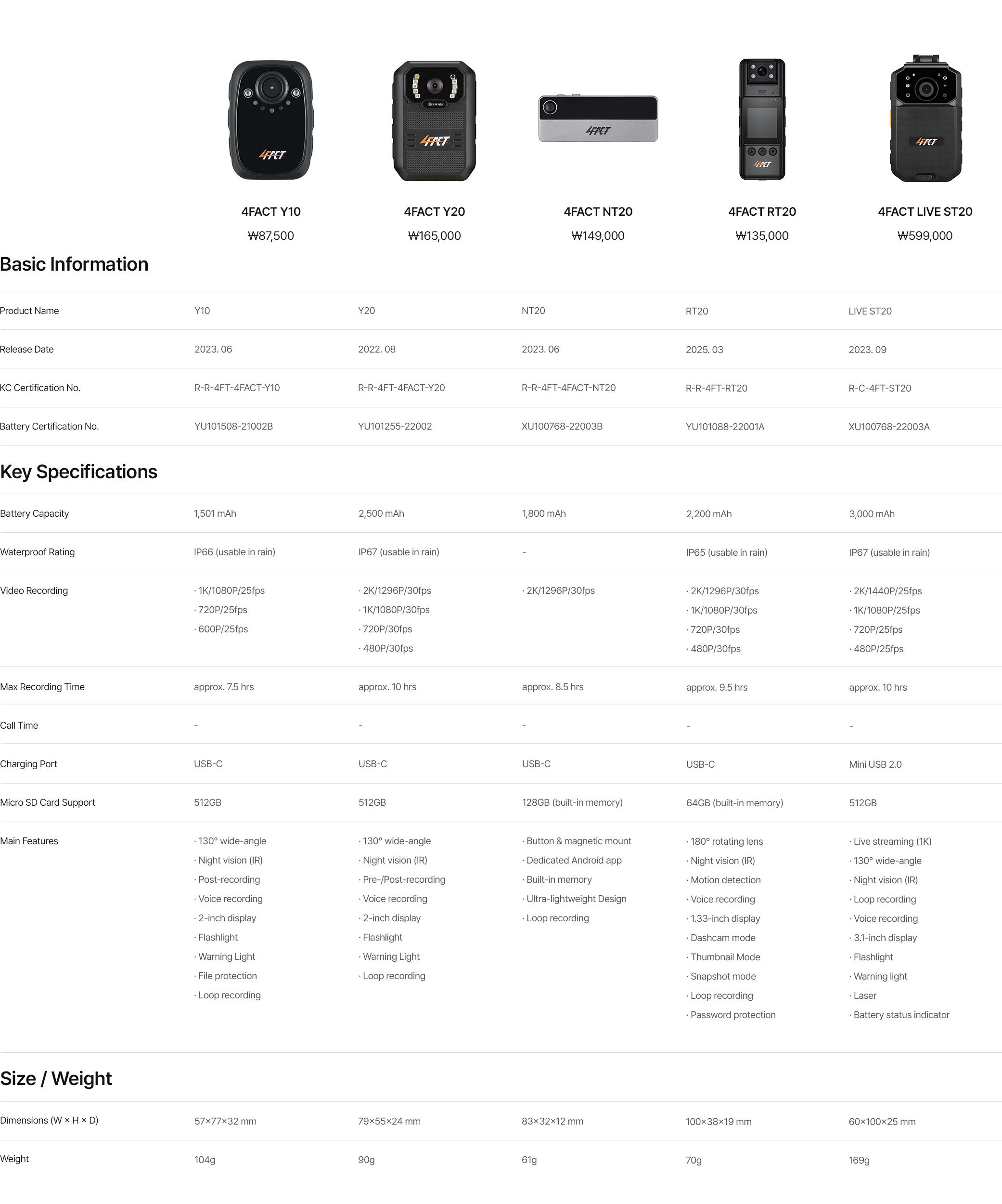 The NT20 bodycamera is a device that provides user convenience with features such as video recording, photo capture, and audio recording. Complete your daily life more perfectly with 128GB of internal memory, a generous 1,800mAh battery capacity, up to 2K resolution video recording, and snapshot features.